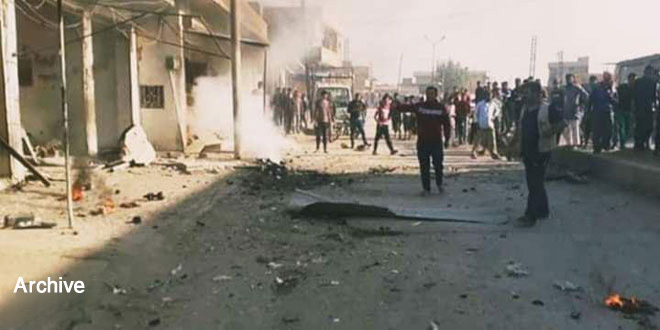 Des sources locales ont fait savoir au correspondant de SANA qu’une moto piégée avait explosé lors du passage d’une voiture qui transportait un certain nombre d’éléments de la milice des « FDS » au village de Homr à l’est de Hassaké, faisant des tués et des blessés parmi les éléments qui étaient à bord, et un civil blessé qui se retrouvait sur place et causant l’incendie de la voiture.