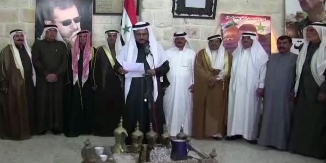 Alep-SANA/Les tribus arabes syriennes dans la ville d’Alep et sa banlieue ont affirmé leur soutien aux habitants de la ville de Manbij dans la banlieue nord d’Alep qui avaient manifesté contre la milice des « FDS », liée à l’occupation américaine, réclamant son expulsion de leurs zones et défendant la souveraineté de la Syrie et l’unité de ses territoires face aux plans de l’occupation américaine et de ses milices séparatistes.