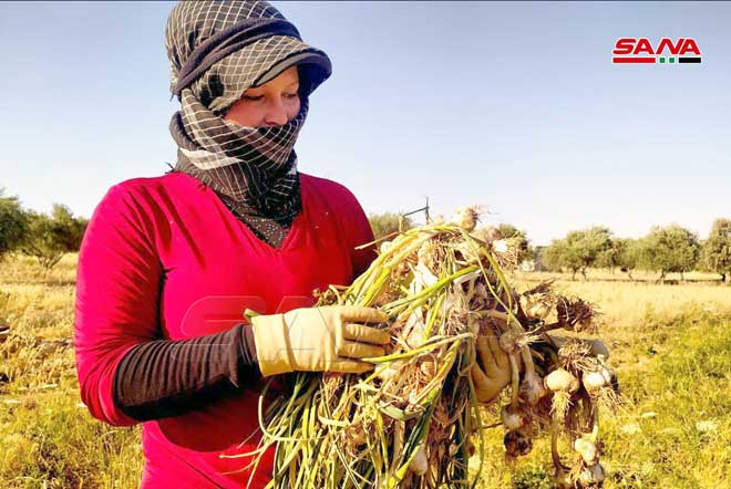 Récolte de l’ail à Salamyeh dans la banlieue est de Hama