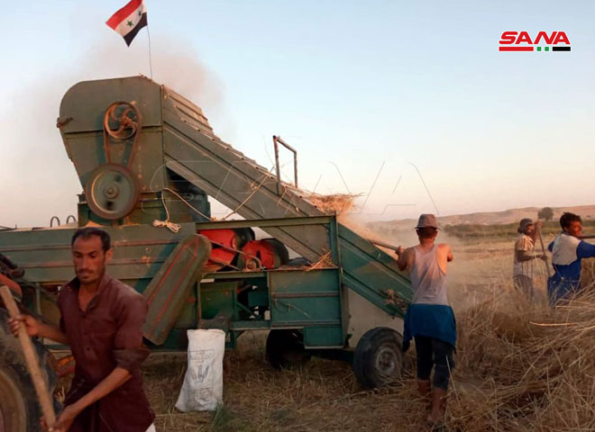 Récolte du blé à Sabkha dans la banlieue de Raqqa libérée du terrorisme