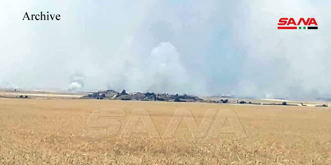 Alep-SANA/De vastes superficies de terres agricoles ont été brûlées à la suite d’une attaque à l’artillerie et aux roquettes, menée par les forces d’occupation turque et leurs mercenaires terroristes contre l’alentour de plusieurs villages dans la banlieue nord d’Alep.