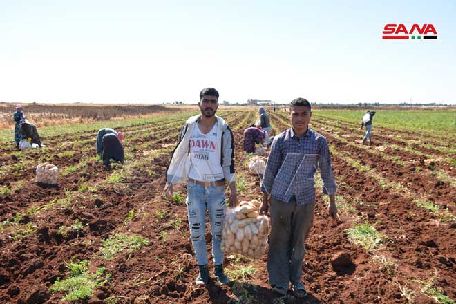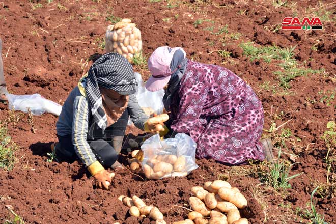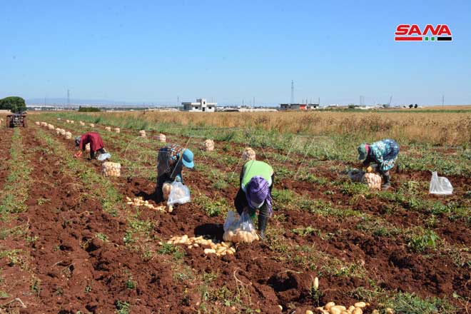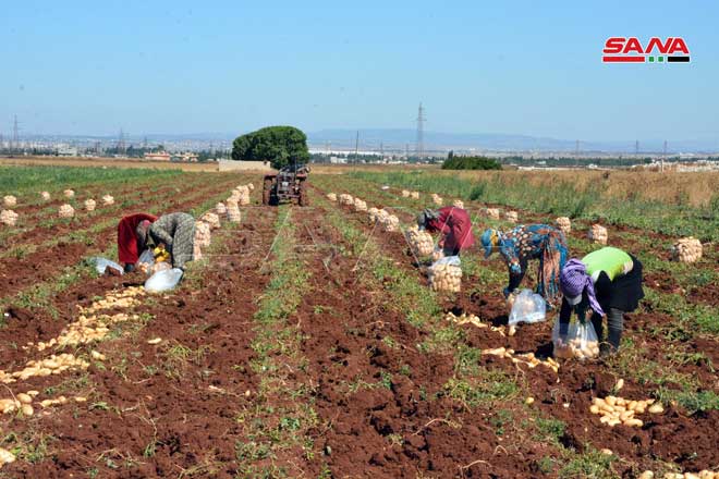 08/06/2021 La récolte de pomme de terre dans la zone de Kattineh dans la banlieue sud-ouest de Homs 2021-06-08 admin Share tweet