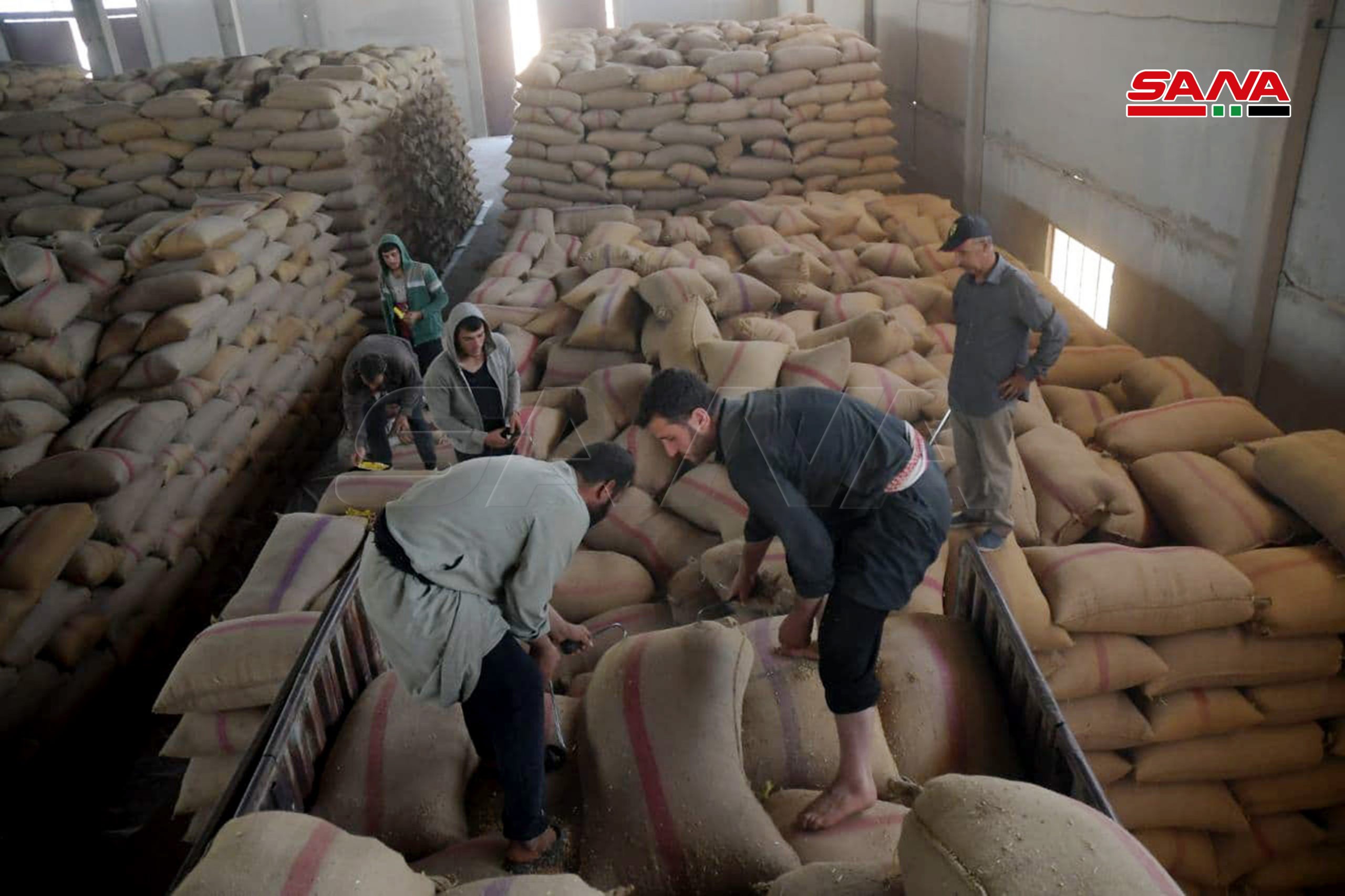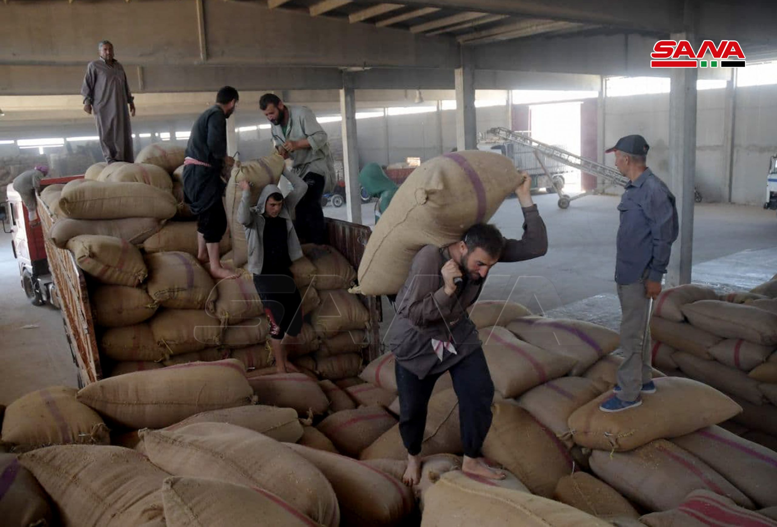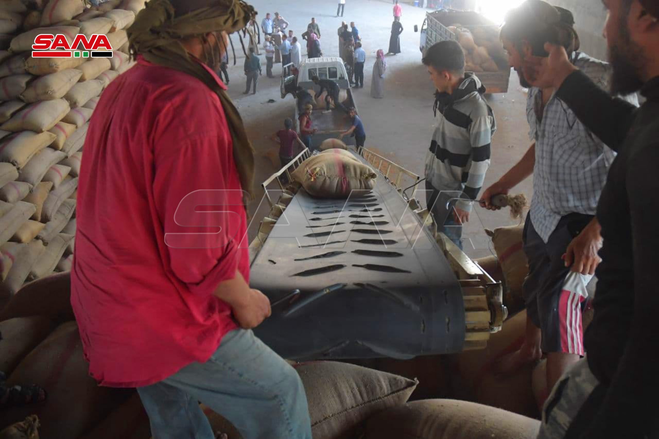 Les paysans dans la banlieue est d’Alep livrent la moisson de blé aux silos