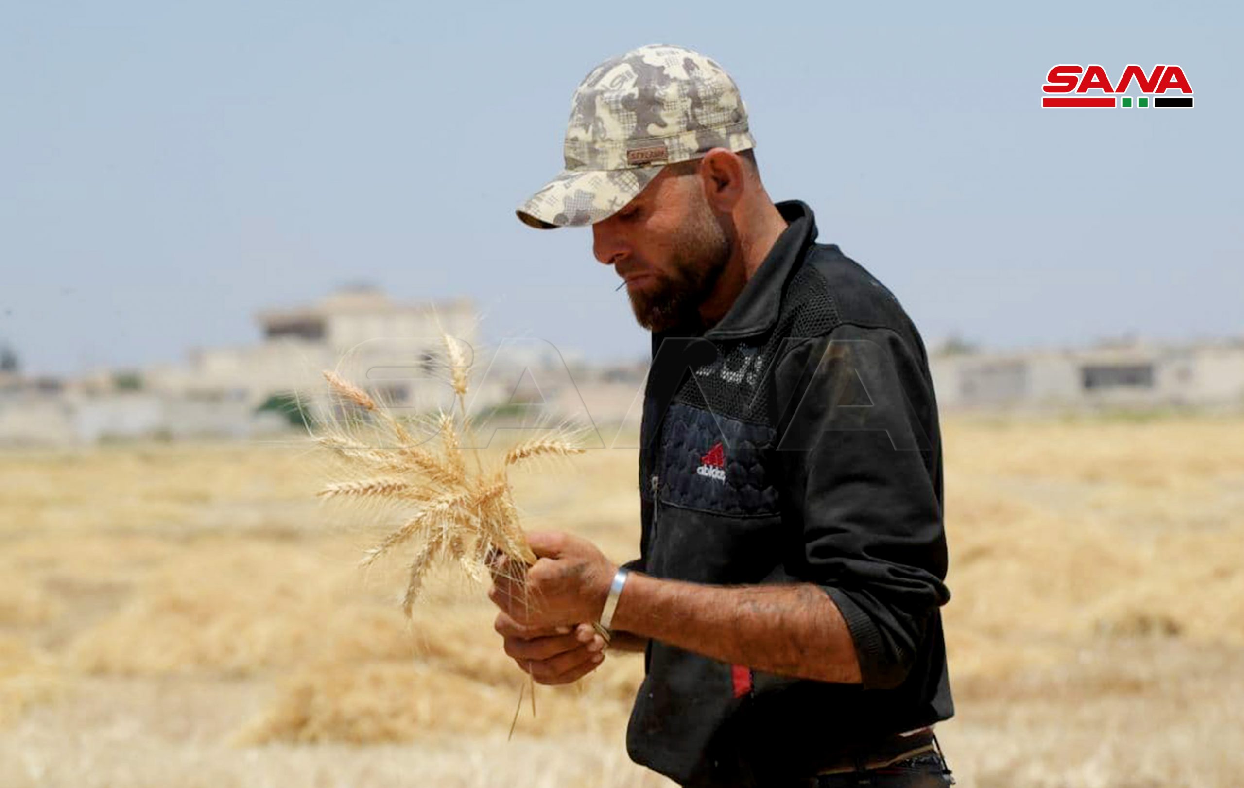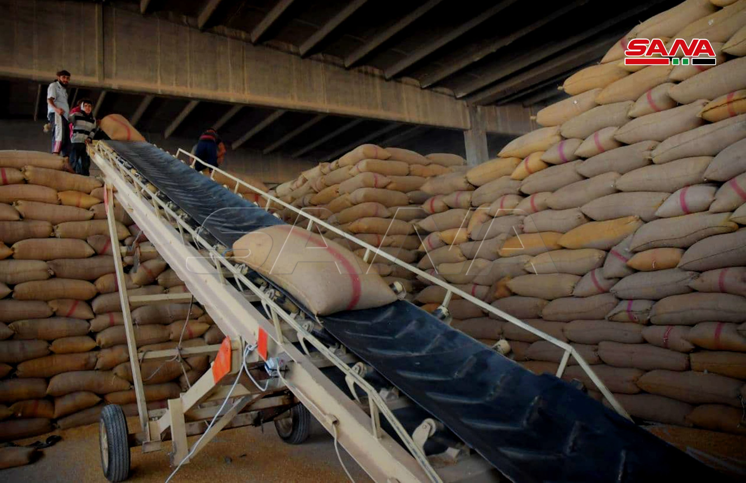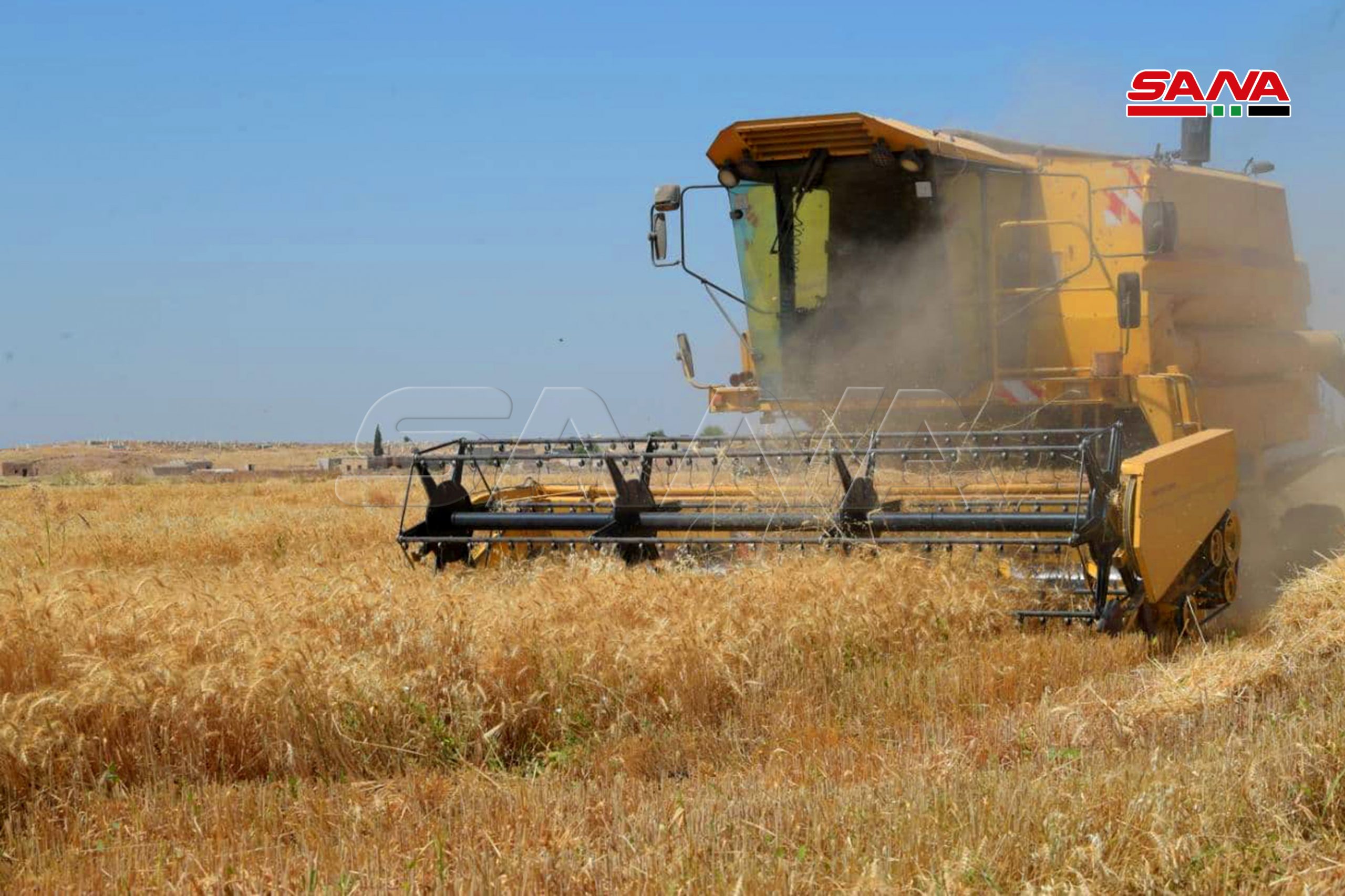 Les paysans dans la banlieue est d’Alep livrent la moisson de blé aux silos