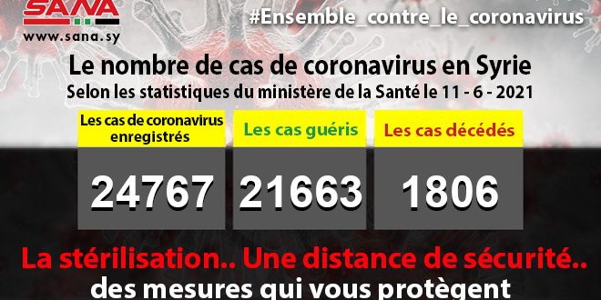 Dans un communiqué, dont une copie est parvenue à SANA, le ministère a fait noter que le bilan des cas de coronavirus enregistrés jusqu’à présent en Syrie avait atteint 24767, dont 21663 cas de guérison et 1806 décès.