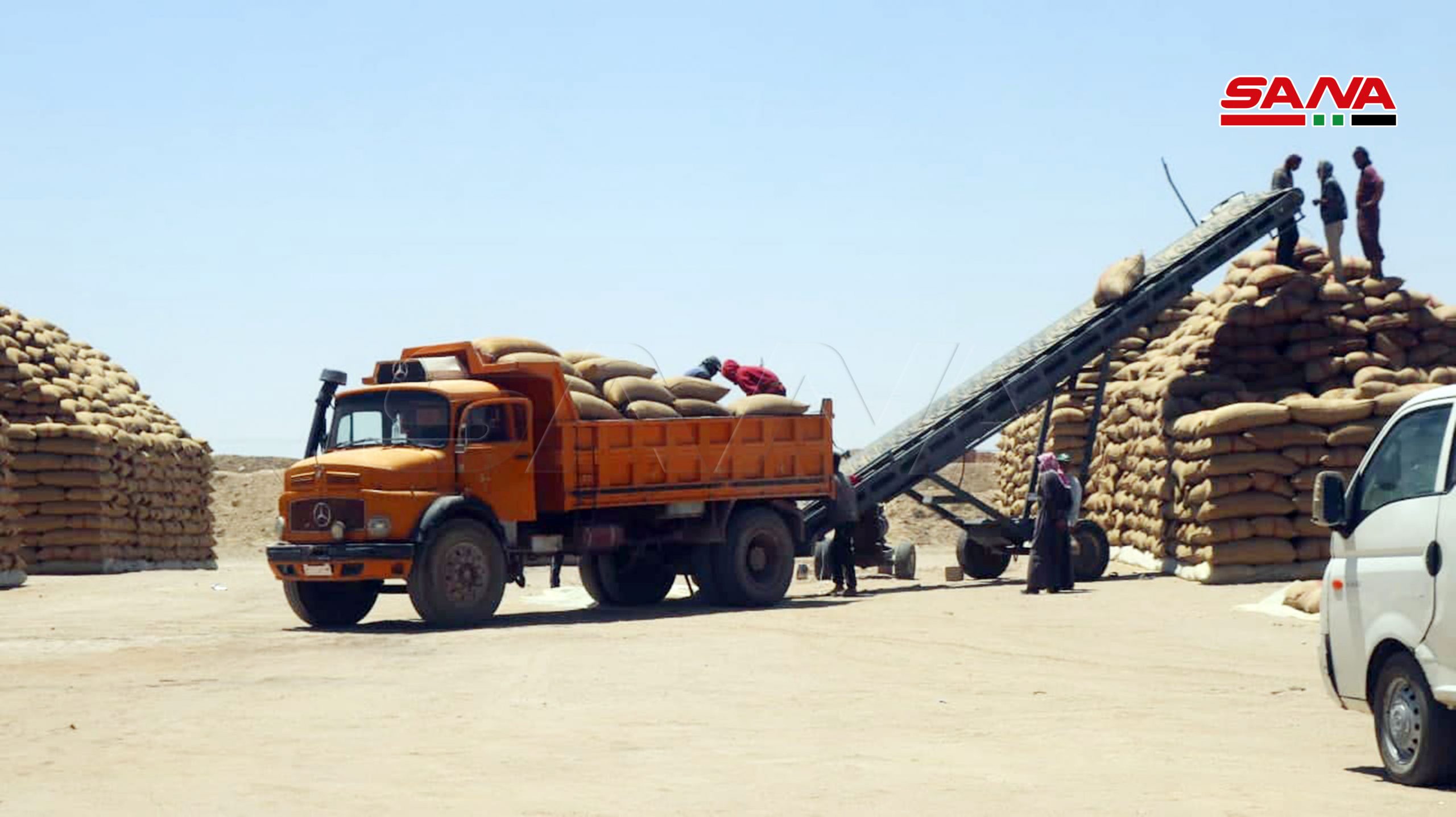 Le centre des céréales de Mayadin continue à recevoir le blé des agriculteurs de la banlieue est de Deir Ezzor