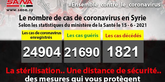 Dans un communiqué, dont une copie est parvenue à SANA, le ministère a fait noter que le bilan des cas de coronavirus enregistrés jusqu’à présent en Syrie avait atteint 24904, dont 21690 cas de guérison et 1821 décès.
