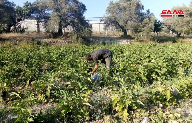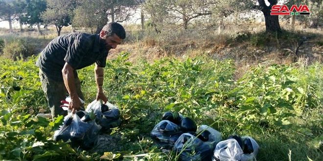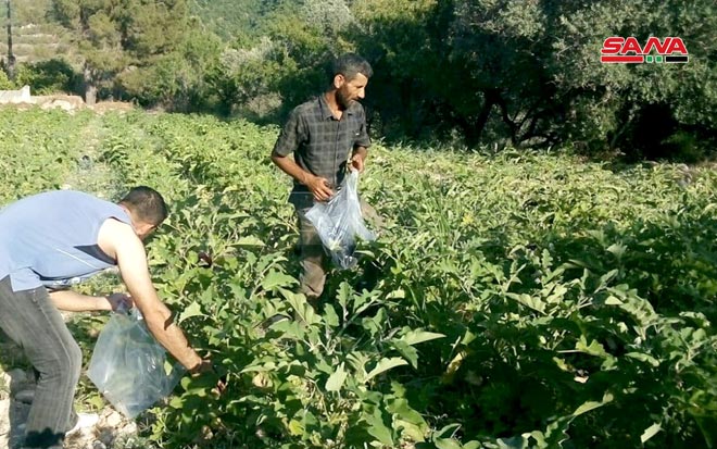 Cueillette d’aubergines dans le village de Qarqafti dans la banlieue de Tartous