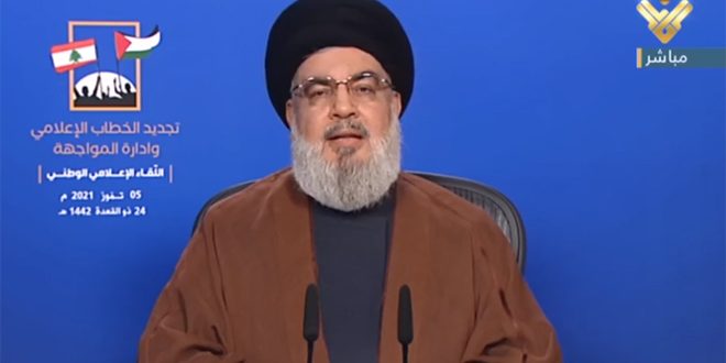 « Le discours médiatique dans l’axe de la résistance est basé sur le droit du peuple de Palestine à sa terre, de la Syrie à son Golan et du Liban au reste de son territoire occupé », a précisé Sayyed Hassan Nasrallah, affirmant le droit des peuples à décider de leur sort loin de l’hégémonie américaine.