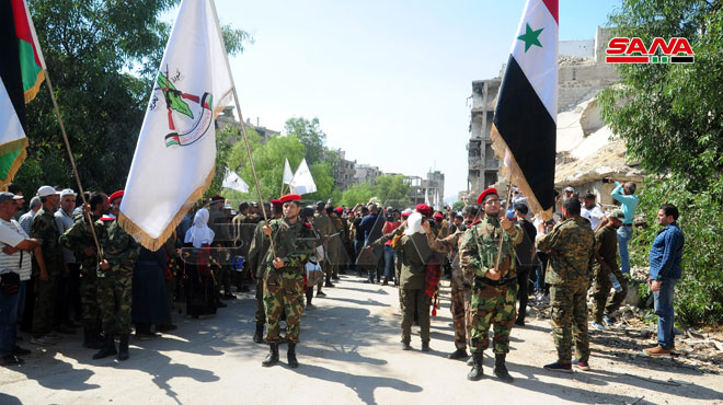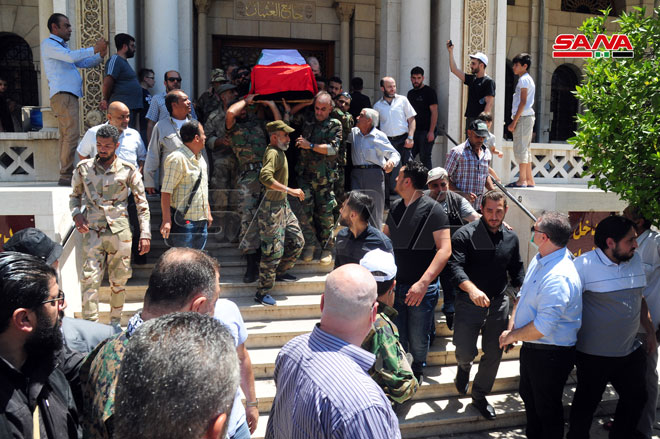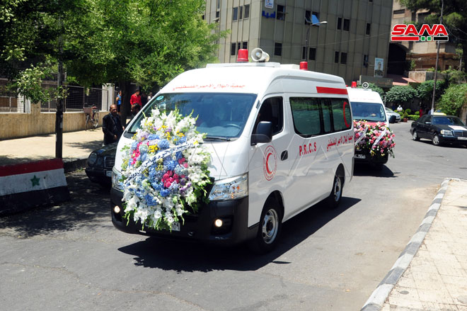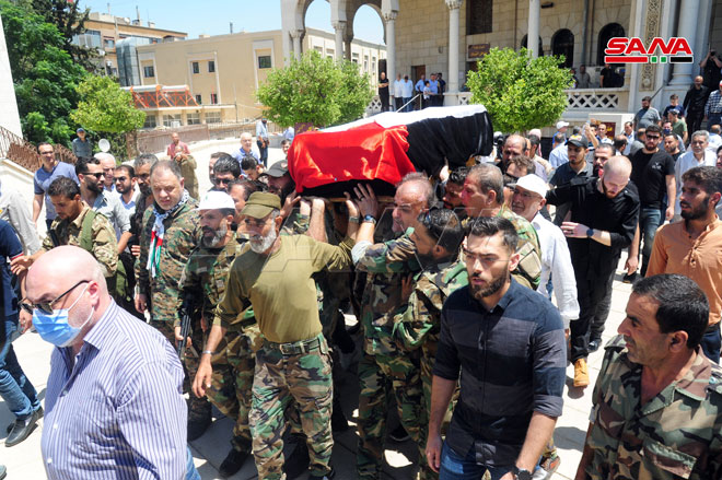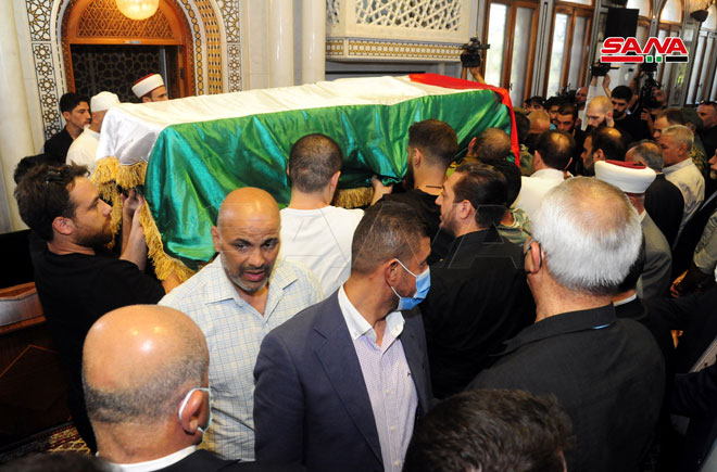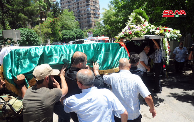 Le cortège funèbre du défunt Jibril, décédé avant-hier, a démarré de l’hôpital Omayya vers la mosquée al-Othman à Mayssat, où une prière funéraire avait eu lieu pour le repos de son âme avant de l’enterrer dans le cimetière des martyrs dans le camp de Yarmouk.