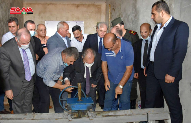 Homs-SANA/Le président du Conseil des ministres, Hussein Arnous, a mis en service les deux projets de l’hôpital de l’université d’al-Baath et le nouveau canal d’eau dans la zone de Daba’a dans la banlieue de Qusseir en direction de la ville de Homs, et ce, au cours de sa tournée à la tête d’une délégation gouvernementale dans les sites des projets de services et de développement dans le gouvernorat.