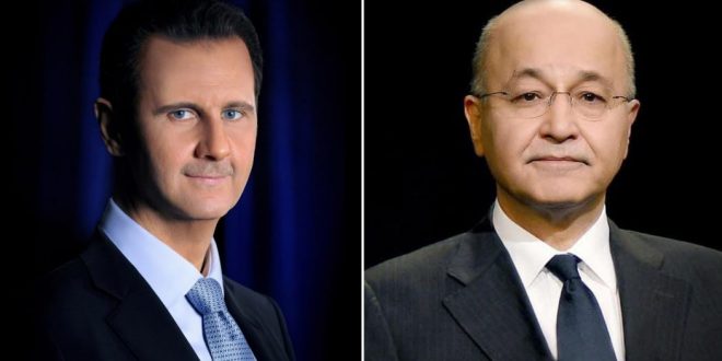 Damas-SANA / Le président Bachar al-Assad a reçu aujourd’hui un appel téléphonique du président irakien, Barham Salih, au cours duquel ils ont examiné les relations entre les deux pays frères, la lutte antiterroriste et la coordination et la coopération en cours entre la Syrie et l’Irak en vue d’éradiquer ce danger qui vise les deux pays.