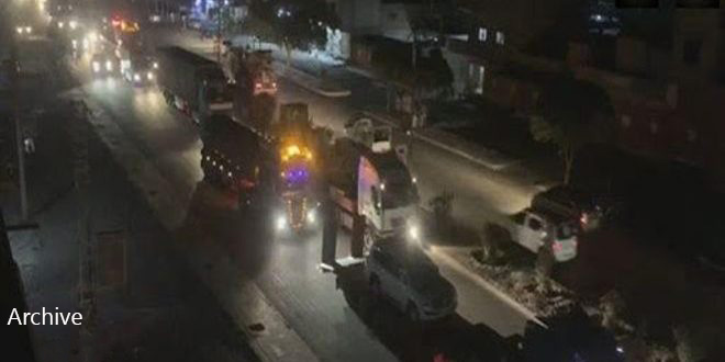 Citées par la correspondante de Sana, des sources locales du village de Soueidiya dans la banlieue de Yaaroubiyah ont indiqué qu’un convoi composé de 44 camions-citernes chargés de pétrole syrien volé, de camions-frigorifiques et de blindés avait quitté la base Kharab al-Jir, située dans la zone de Malikiyah à la frontière syro-irakienne et avait pris la route vers le nord de l’Irak via le poste illégal al-Walid.