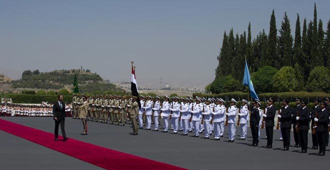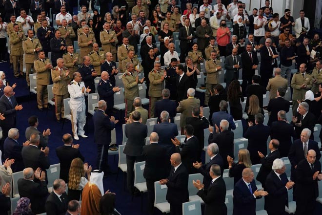 Damas-SANA / Le président Ahmad Al-Charaa a reçu aujourd’hui au Palais du Peuple à Damas …