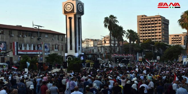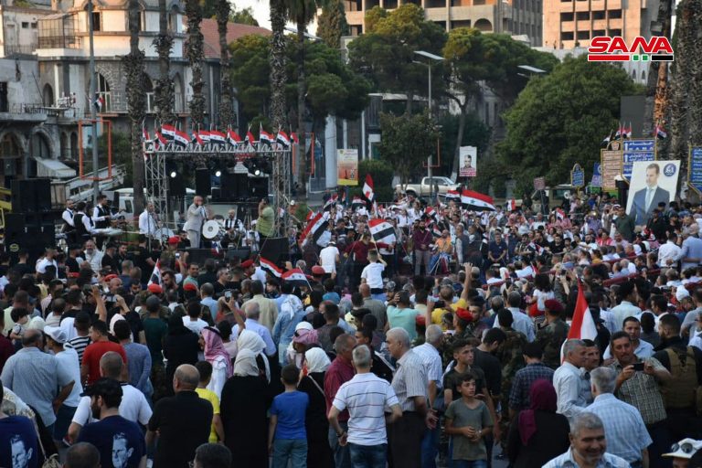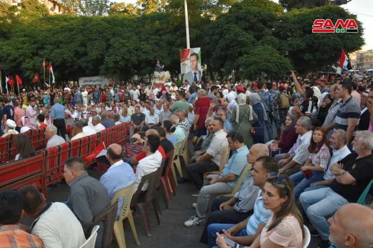 Rassemblement populaire à Homs pour célébrer le serment constitutionnel du président