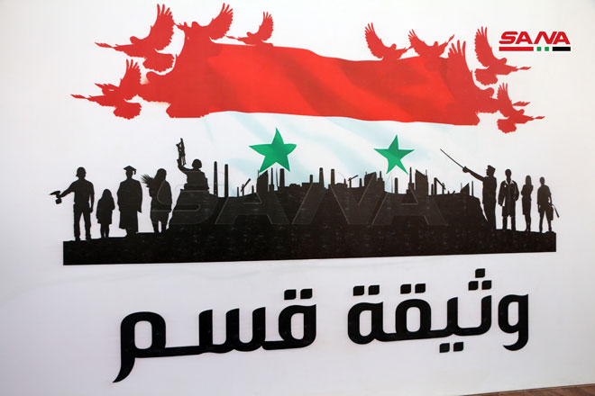 Activité « Document de serment » dans la localité de Bassir dans la banlieue de Daraa pour célébrer la victoire du président Bachar al-Assad
