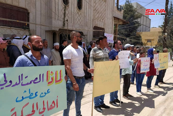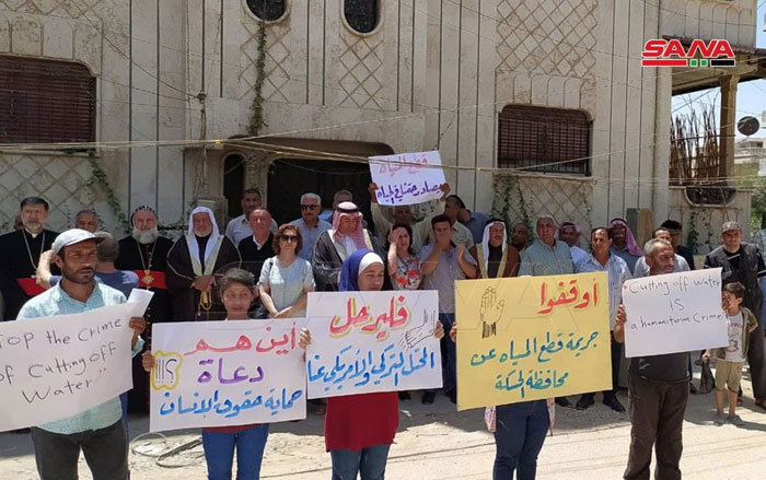 Sit-in de protestation à Hassaké pour condamner le crime de l’occupant turc qui coupe l’eau potable