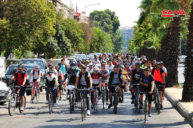 Défilé de vélos à Damas à l’occasion de la prestation du serment constitutionnel