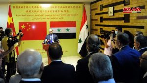Dans une allocution similaire, le ministre des Affaires Etrangères et des Expatriés au gouvernement chargé d’expédier les affaires courantes, Fayçal Miqdad, a souligné la profondeur des relations de l’amitié et de la coopération entre la Syrie et la Chine, qui reflètent les espoirs et les aspirations des peuples des deux pays.