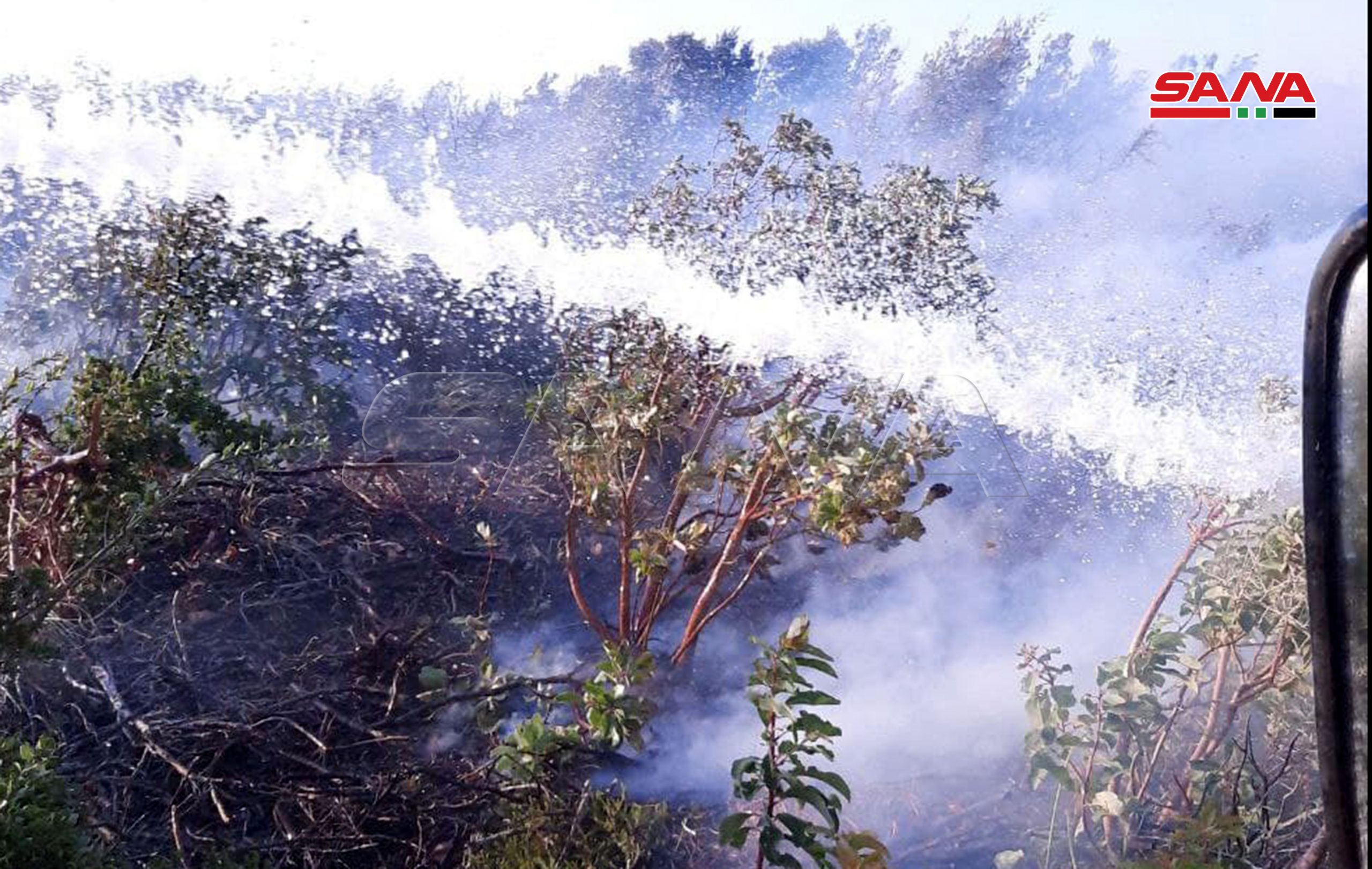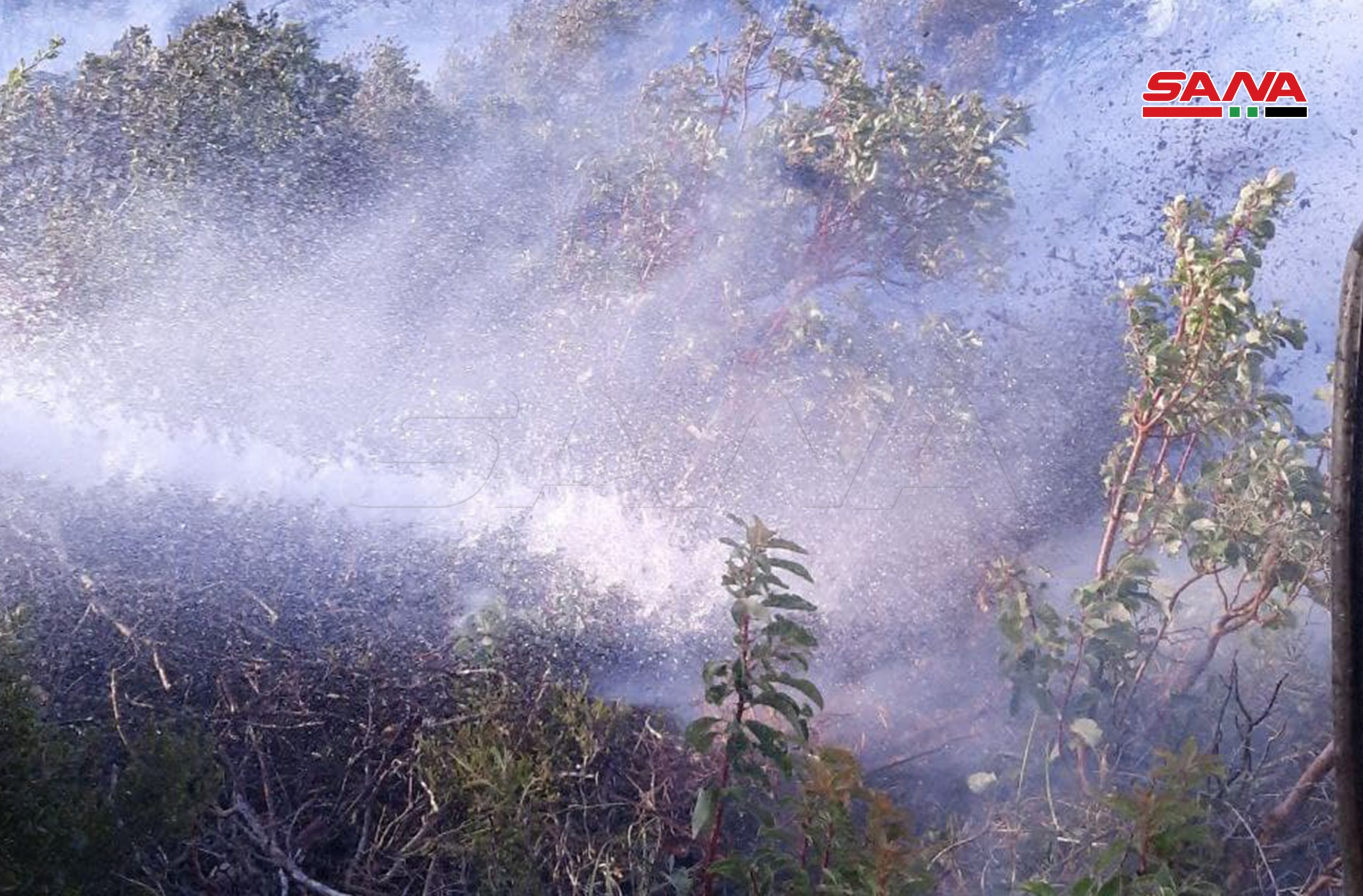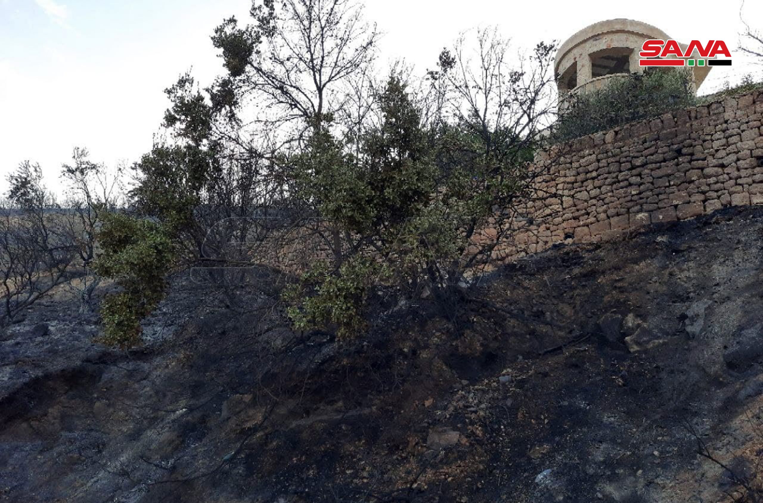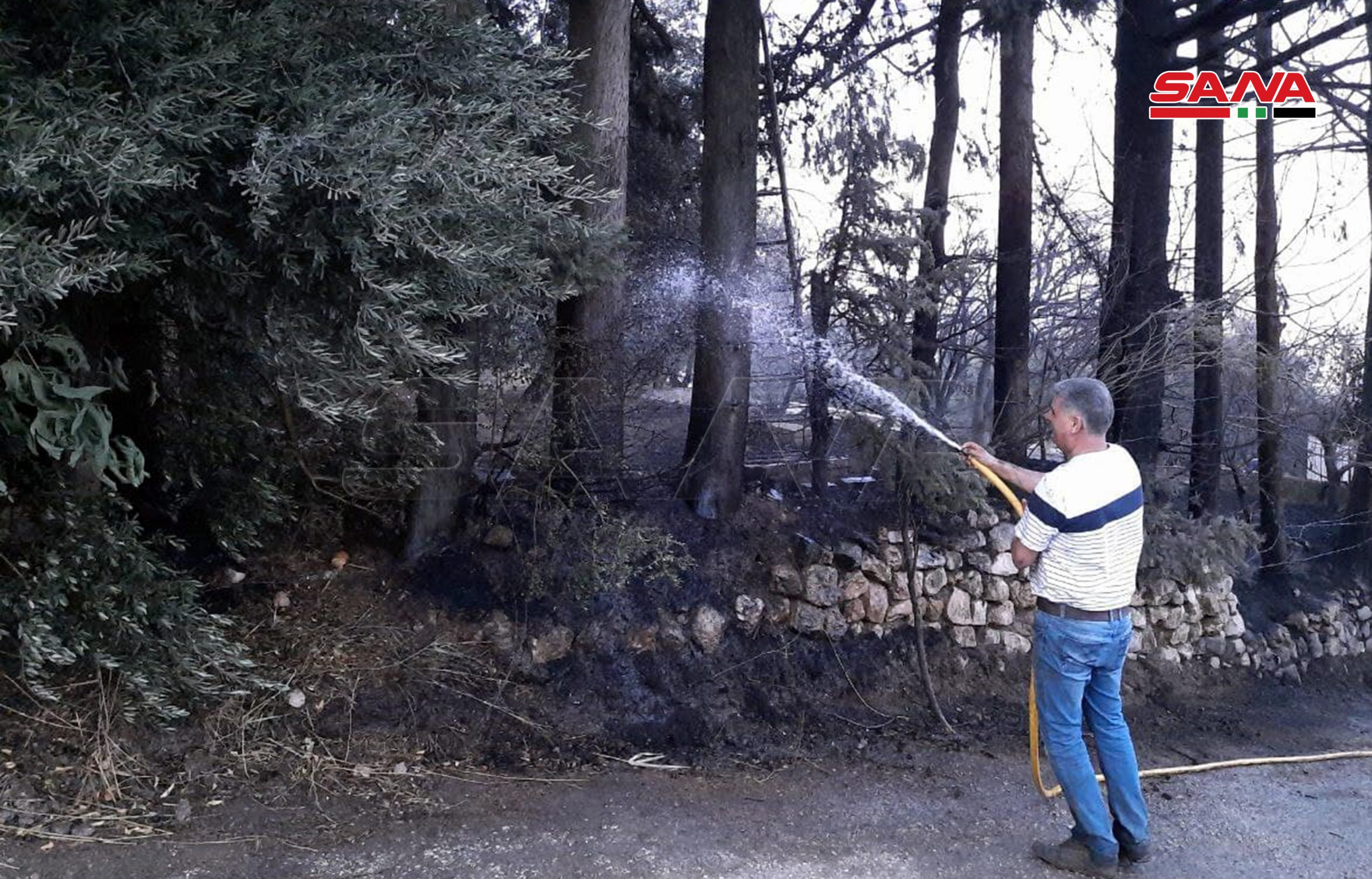 Hama-SANA / Les sapeurs-pompiers dans le gouvernorat de Hama ont complètement maîtrisé l’incendie qui avait éclaté dans les forêts montagneux à Kaferlahah Ain Khanzir dans la banlieue de Mussyaf.
