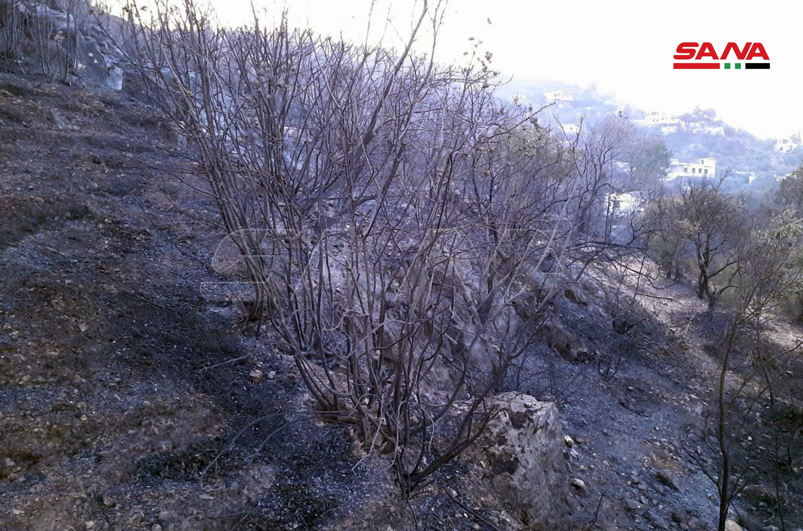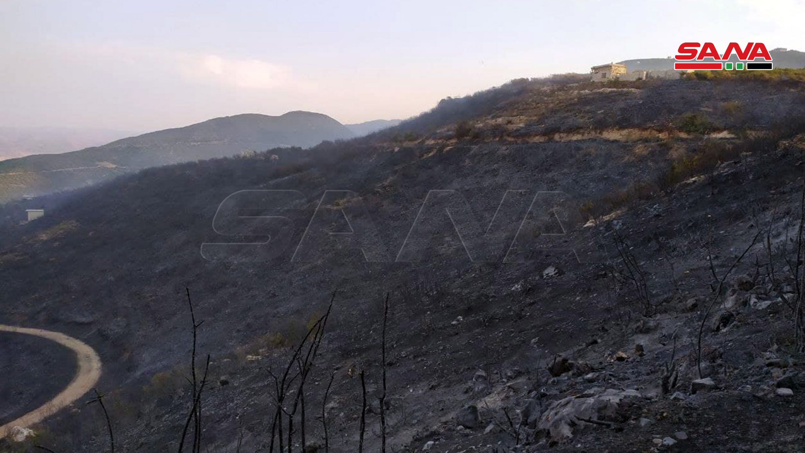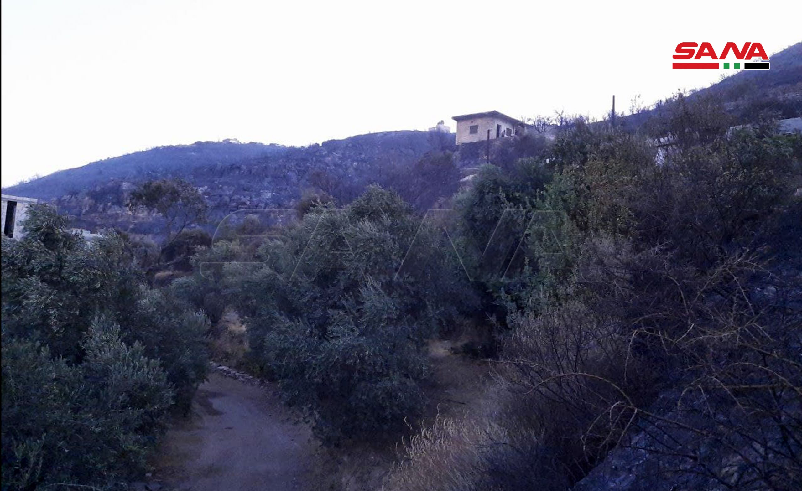 Hama-SANA / Les sapeurs-pompiers dans le gouvernorat de Hama ont complètement maîtrisé l’incendie qui avait éclaté dans les forêts montagneux à Kaferlahah Ain Khanzir dans la banlieue de Mussyaf.