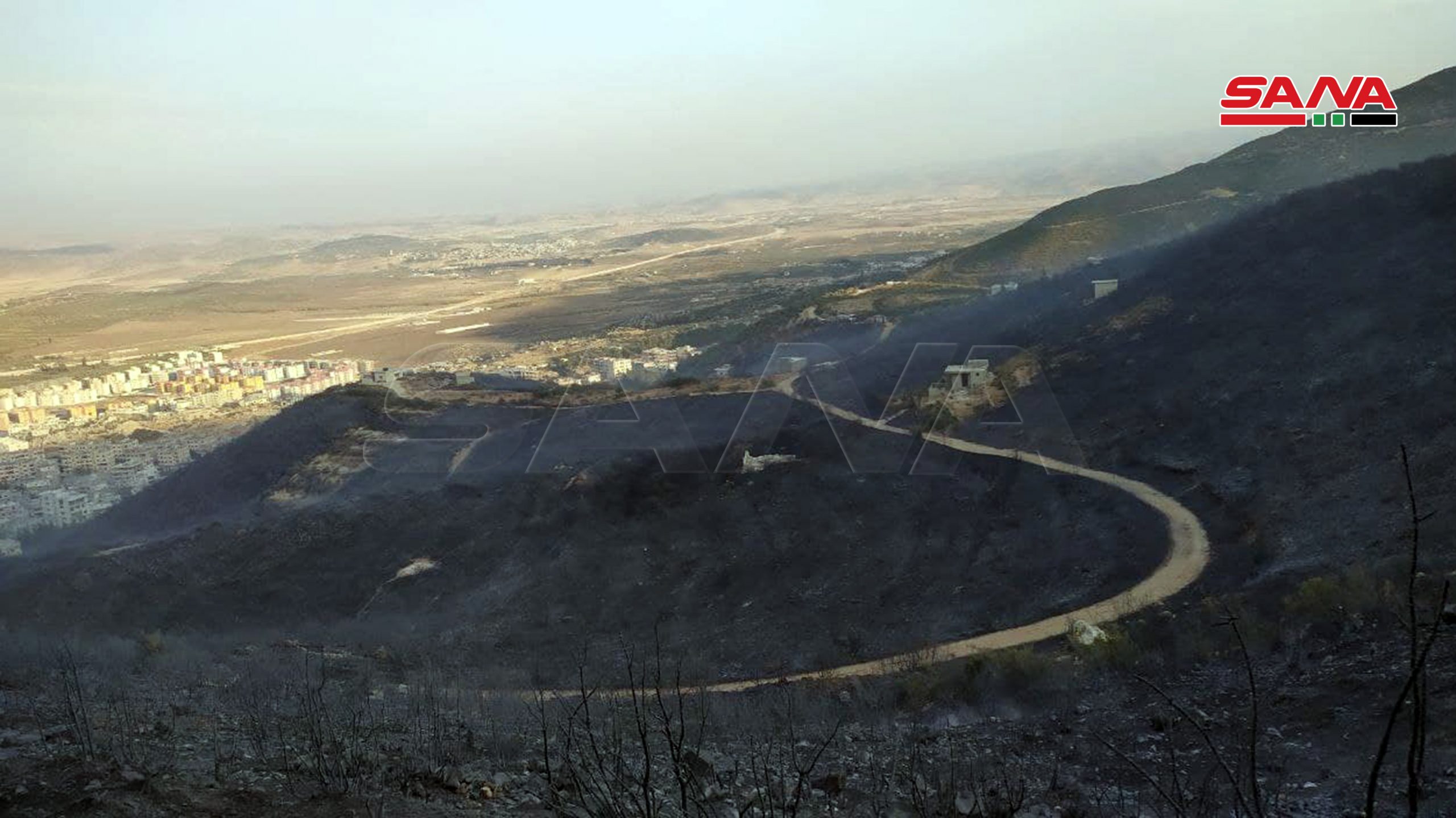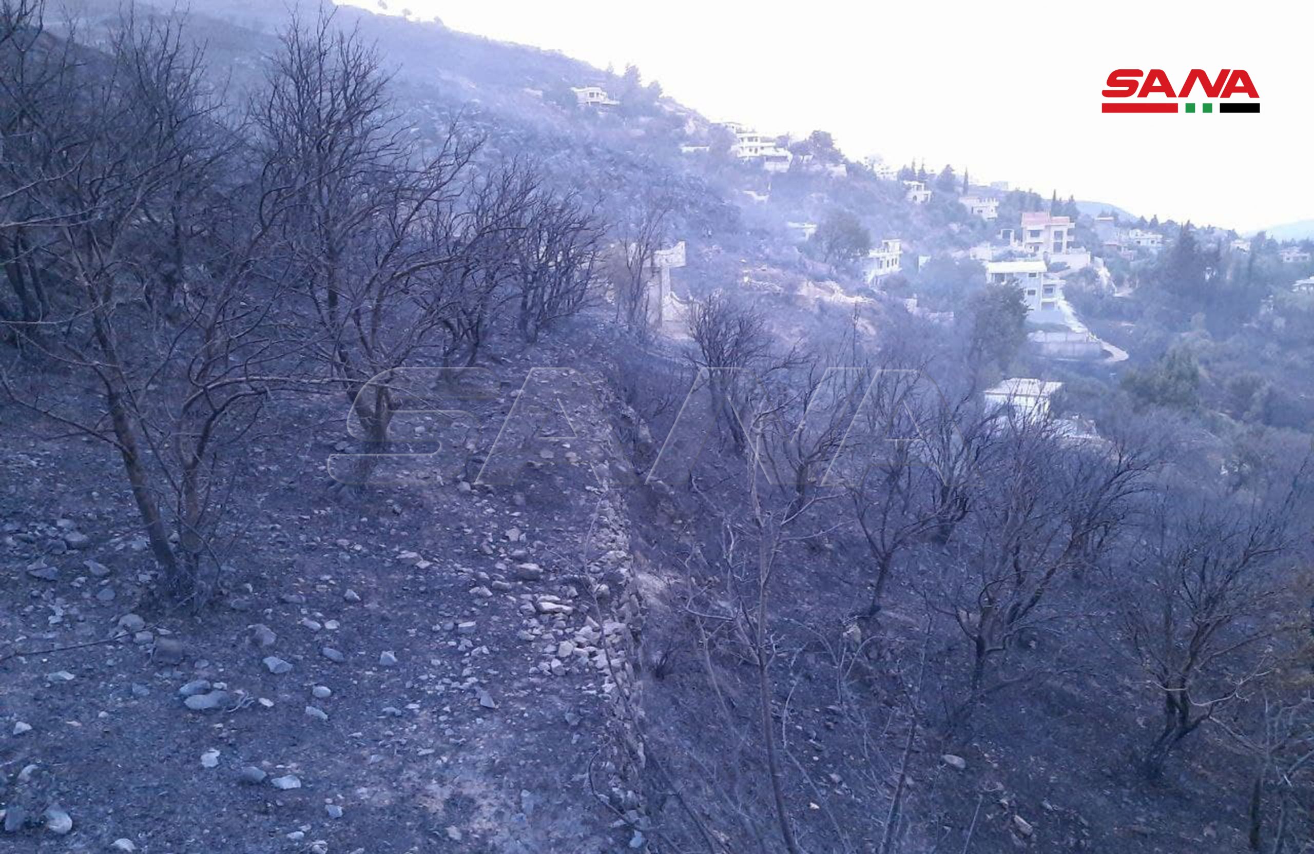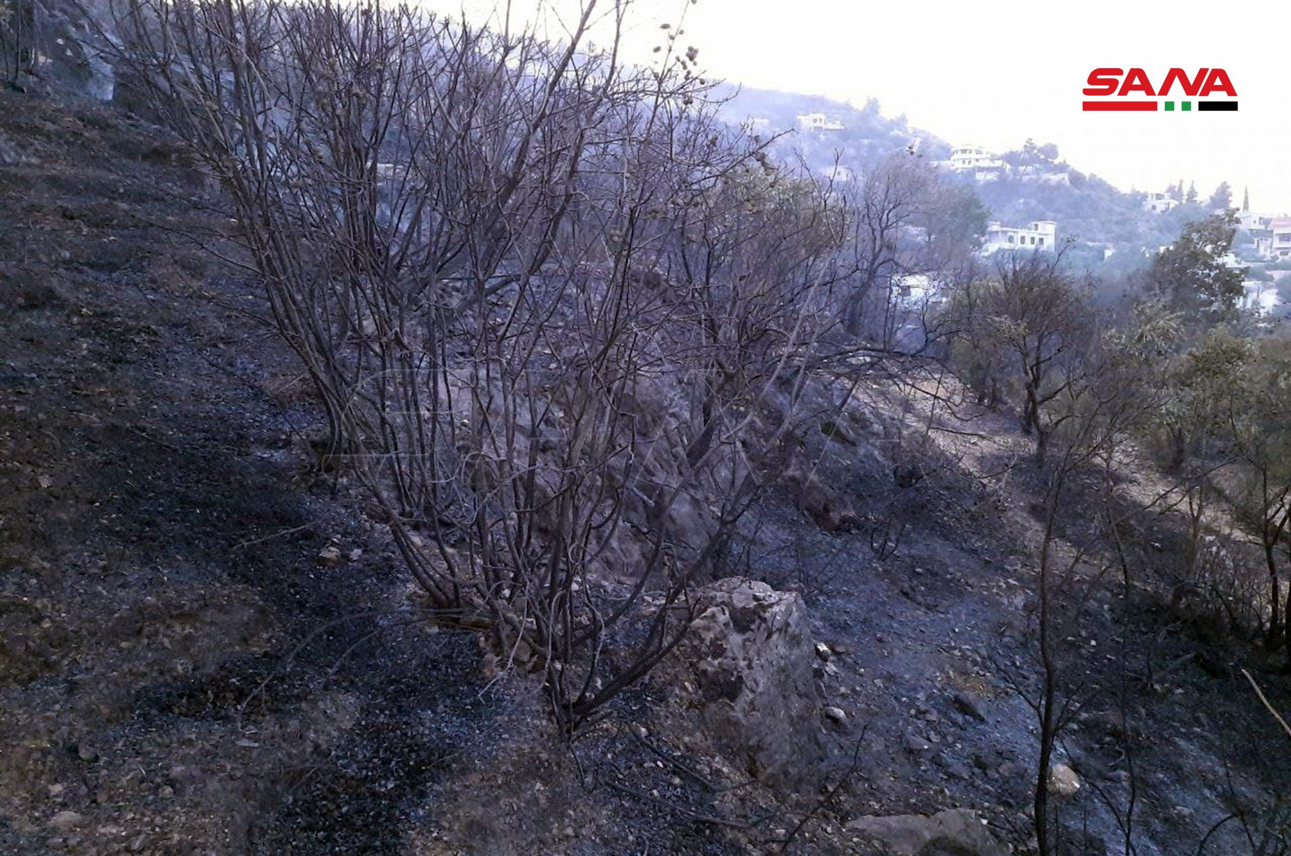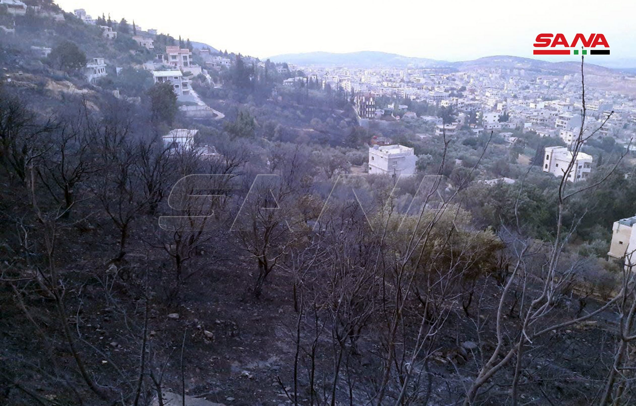 Hama-SANA / Les sapeurs-pompiers dans le gouvernorat de Hama ont complètement maîtrisé l’incendie qui avait éclaté dans les forêts montagneux à Kaferlahah Ain Khanzir dans la banlieue de Mussyaf.