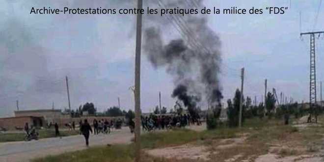 Des sources civiles ont indiqué à SANA que des factions populaires avaient mené une attaque aux mitrailleuses, contre une voiture transportant le chef de la soi-disant ‘’Agence de sécurité publique’’ et un autre élément appartenant à la milice des ‘’FDS’’, sur l’autoroute de Tal Hamis/ Ta Brak dans la banlieue de Hassaké, les blessant grièvement.