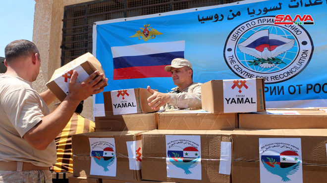 Abdullah Falah, membre du bureau exécutif du Conseil du gouvernement de Daraa, a fait noter que l’aide octroyée par la Fédération de Russie reflète la profondeur des relations entre la Syrie et la Russie, soulignant que les bénéficiaires sont les familles venant de la zone de Daraa al-Balad et résidant dans le centre d’accueil temporaire à l’école Mayssaloun.