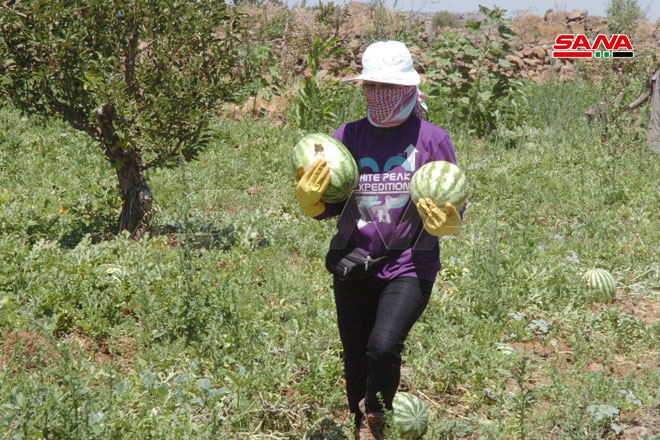 Récolte de la pastèque rouge dans le village de Sahwet al-Khoder dans la banlieue sud-est de Soueidaa