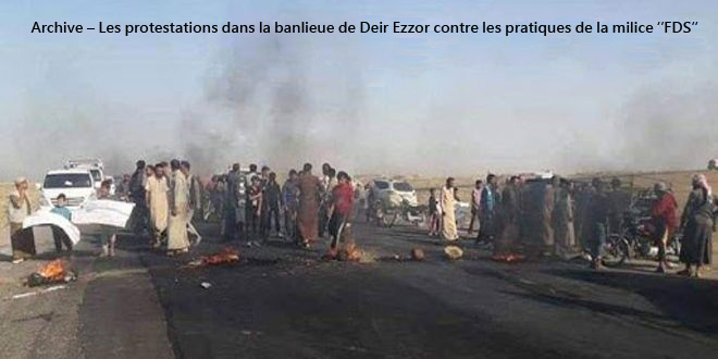 Des sources locales ont souligné à SANA la poursuite des attaques contre les déplacements et les positions des hommes armés de la milice des ‘’FDS’’ dans les zones de leur déploiement dans la région syrienne d’al-Jazira, où les factions populaires avaient mené une attaque aux mitrailleuses visant un homme armé de ladite milice dans le village de Jazret al-Bouchams dans la banlieue ouest de Deir Ezzor, le tuant immédiatement.