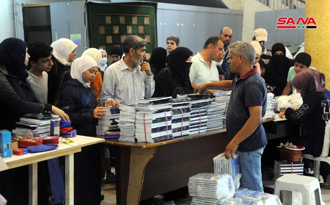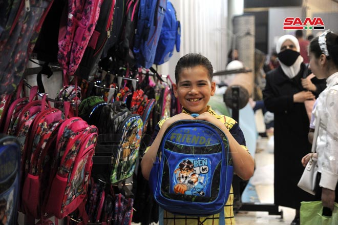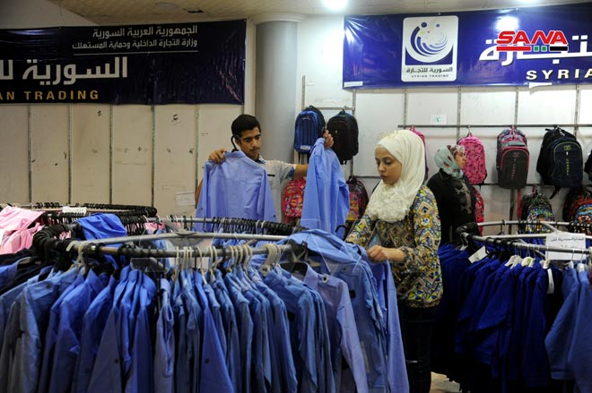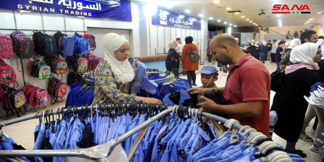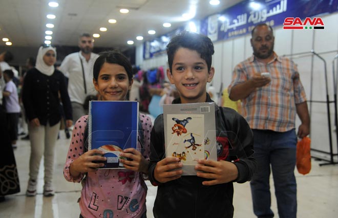 A la rentrée scolaire… les salles de l’Établissement syrien du commerce connaissent un afflux par les parents et les élèves pour acheter leurs besoins