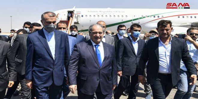 Damas-SANA/Le ministre iranien des Affaires Etrangères, Hussein Emir Abdullahian, est arrivé aujourd’hui à Damas en visite pour s’entretenir avec de hauts responsables de l’État, sur les développements dans la région et le renforcement des relations bilatérales face aux pressions exercées sur les deux pays.
