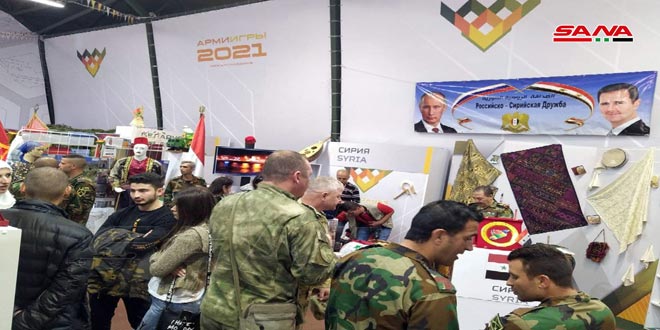 Moscou -SANA/Dans le cadre des Jeux militaires internationaux « Armée- 2021 », l’équipe de l’armée arabe syrienne a organisé, en marge des compétitions de Biathlon pour chars organisées sur le stand d’Abino de tir et d’entraînement appartenant au ministère russe de la Défense dans la périphérie de la capitale, Moscou, un pavillon à la Maison de l’Amitié appartenant aux jeux militaires sur l’histoire et l’ancienne civilisation de la Syrie, les réalisations de son peuple et de son armée dans les différents domaines et les victoires qu’elle a réalisées sur le terrorisme international.