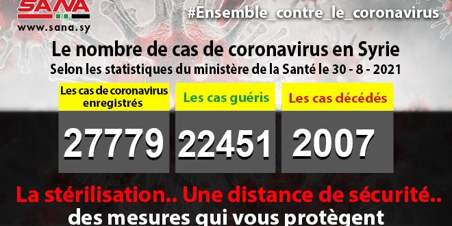 Dans un communiqué, dont une copie est parvenue à SANA, le ministère a fait noter que le bilan des cas de coronavirus enregistrés jusqu’à présent en Syrie avait atteint 27779, dont 22451 cas de guérison et 2007 décès.
