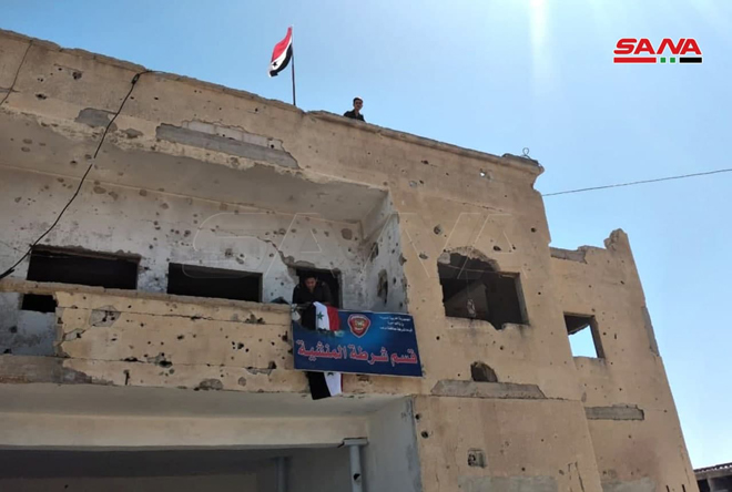 En outre, le correspondant a souligné que le drapeau national avait été hissé sur le bâtiment du centre de police de Manchieh dans le quartier de Daraa al-Balad pour fournir les services aux citoyens.