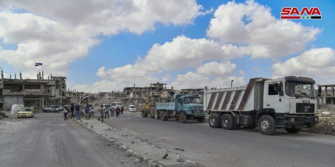 Daraa – SANA / Les départements de services dans le gouvernorat de Daraa ont commencé les opérations de la réouverture des rues, l’enlèvement des décombres et la réhabilitation des services dans la zone de Daraa al-Balad, après sa sécurisation par l’armée arabe syrienne.