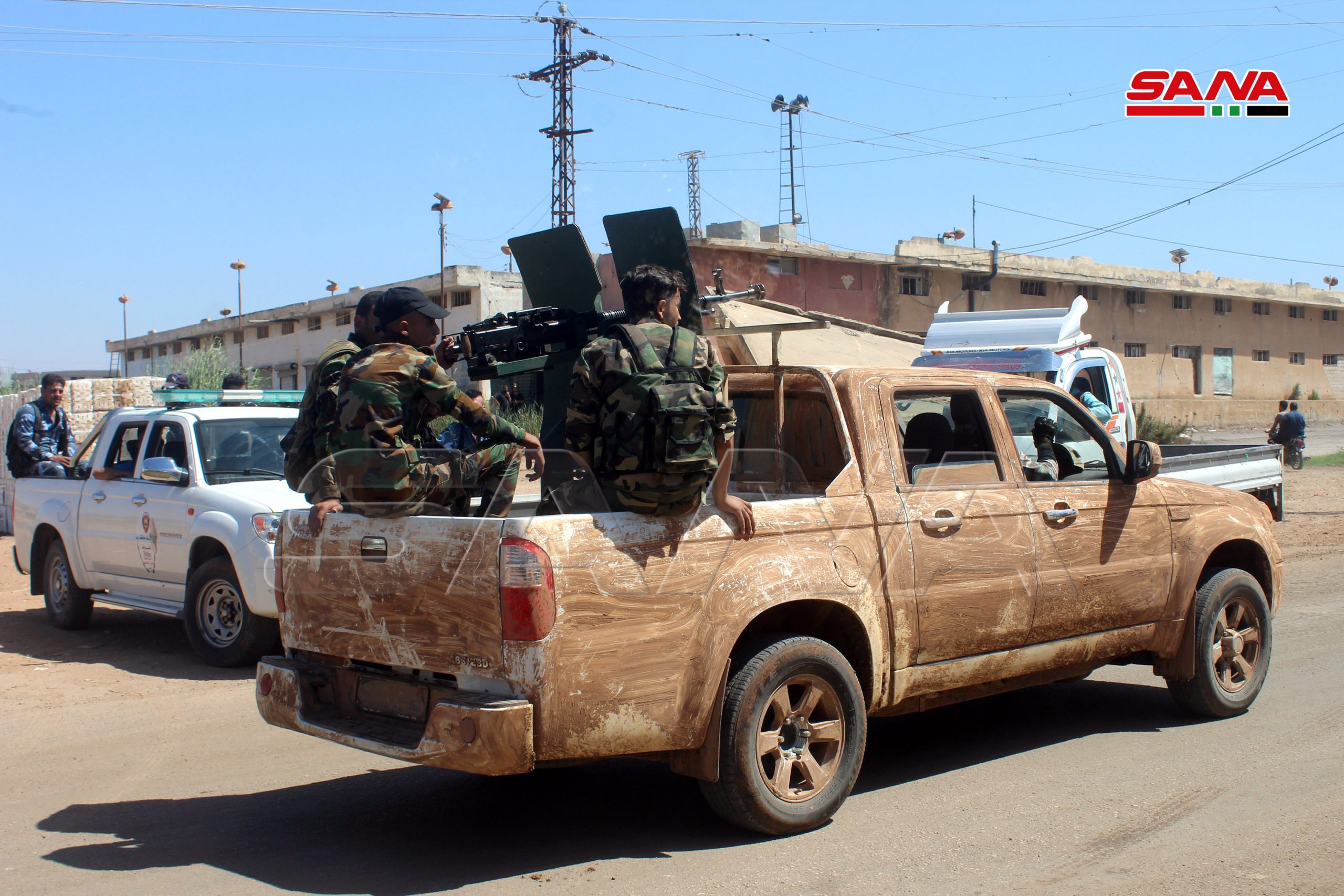Daraa-SANA / Le drapeau national a été hissé aujourd’hui sur le poste de police de Tafas dans la banlieue nord-ouest de Daraa, parallèlement au déploiement d’unités de l’armée arabe syrienne dans la ville et la mise en place des points de contrôle pour y proclamer le rétablissement de la sécurité et de la stabilité.
