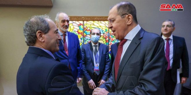 New York-SANA / Fayçal Miqdad, Ministre des Affaires étrangères et des Expatriés à New York, a examiné avec Sergueï Lavrov, Ministre russe des Affaires étrangères, les différents côtés relatifs à la consolidation des relations bilatérales distinguées entre les deux pays amis dans les différents domaines politique et économique, qui avaient connu un nouvel élan lors du sommet tenu à Moscou entre les deux présidents, Bachar al-Assad et Vladimir Poutine.