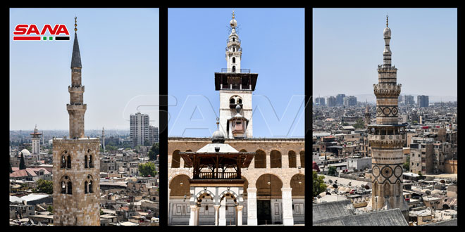 Parmi ces vestiges figure la Grande mosquée des Omeyyades, caractérisée par ses trois minarets qui constituent des chefs-d’œuvre architecturaux au ciel de Damas et qui sont devenus un exemple à suivre dans le monde entier.