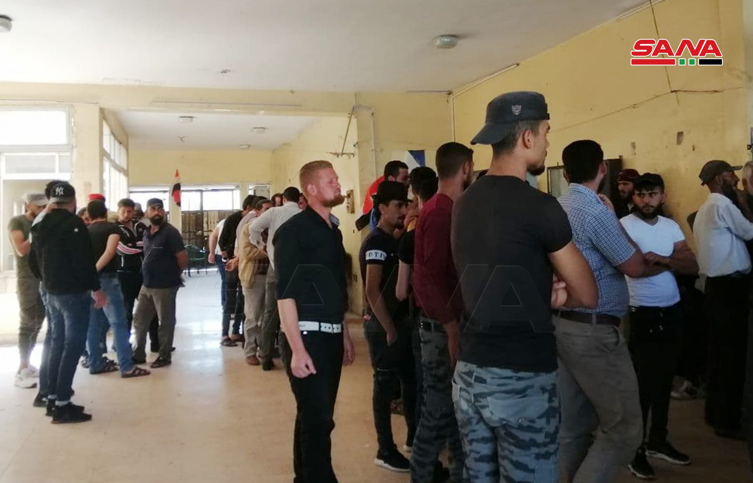 Daraa-SANA /Les services compétents, en coopération avec des unités de l’armée arabe syrienne, ont poursuivi la régularisation de la situation des hommes armés, des personnes recherchées, qui avaient échappé au service militaire dans la ville de Nawa dans la banlieue nord de Daraa, en application de l’accord de règlement avancé par l’Etat.