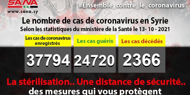 Dans un communiqué, dont une copie est parvenue à SANA, le ministère a fait noter que le bilan des cas de coronavirus enregistrés jusqu’à présent en Syrie avait atteint 37794, dont 24720 cas de guérison et 2366 décès.