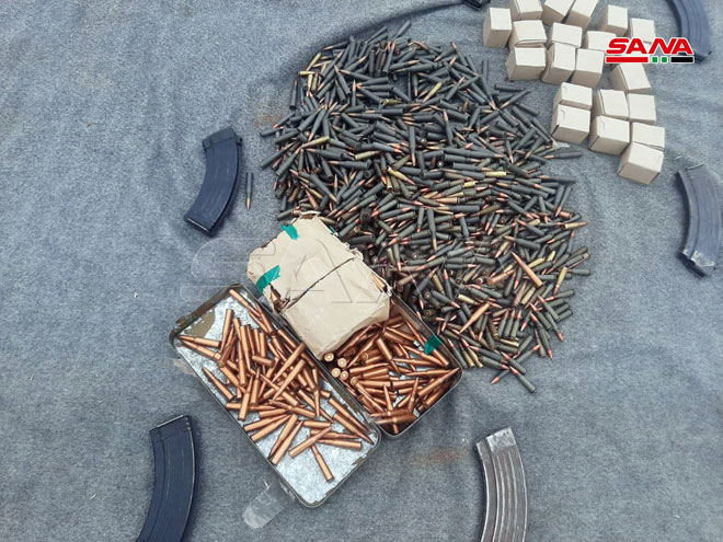 Une source des services compétents a indiqué à SANA que les armes comprenaient des mines antichars, des engins explosifs, des obus « RPG » et des mitrailleuses PKC, des jumelles militaires, des fusils russes et de grandes quantités de balles de divers calibres.