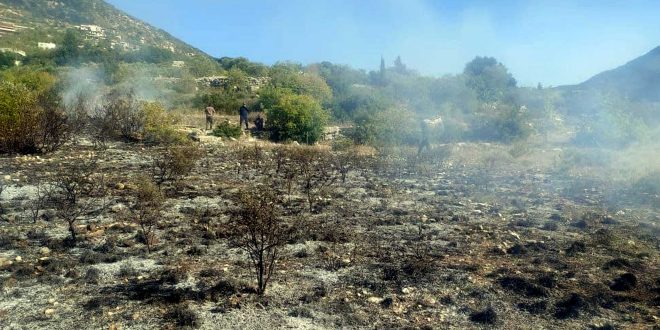 Lattaquié-SANA / Des éléments du département des forêts de Jablé et l’équipe des sapeurs -pompiers « Zama » ont éteint un incendie qui avait éclaté aujourd’hui dans le village de Qarn Heliya dans la banlieue de Jablé dans le gouvernorat de Lattaquié.