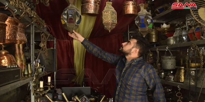 Le blessé Nomra a décidé de continuer le métier de ses ancêtres dans la vente de cuivre en ouvrant une boutique sur le marché des chaudronniers dans la ville d’Alep libérée du terrorisme.
