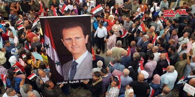 Alep-SANA / Les habitants du village de Kafar Nasseh et des villages avoisinants dans la zone d’A’zaz dans la banlieue d’Alep ont observé aujourd’hui un sit-in de protestation contre l’occupant turc et ses mercenaires terroristes.