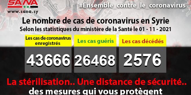 Dans un communiqué, dont une copie est parvenue à SANA, le ministère a fait noter que le bilan des cas de coronavirus enregistrés jusqu’à présent en Syrie avait atteint 43666, dont 26468 cas de guérison et 2576 décès.