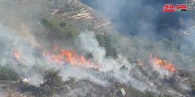Dans une déclaration à SANA, le Directeur de l’Agriculture à Lattaquié, Bassem Doba, a fait savoir qu’un incendie avait éclaté dans une zone de falaises rocheuses dures difficile à atteindre par les véhicules, ce qui avait obligé les sapeurs-pompiers à étendre des canons à eau sur de longues distances.
