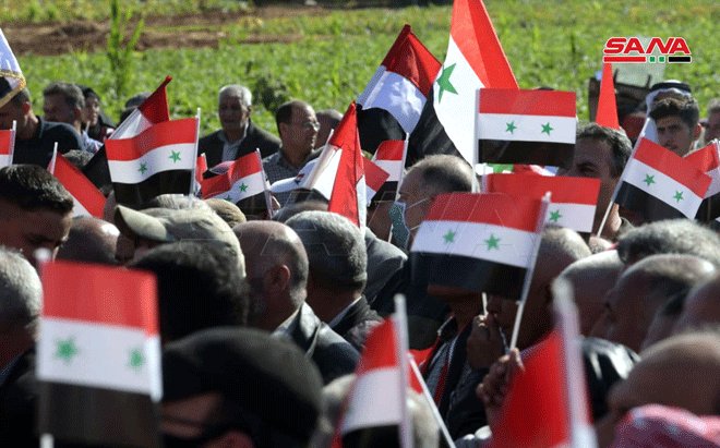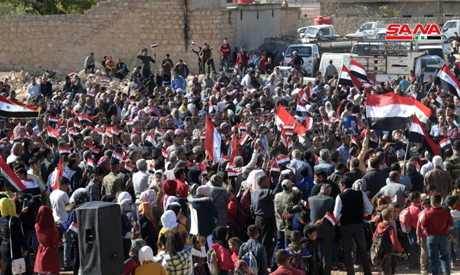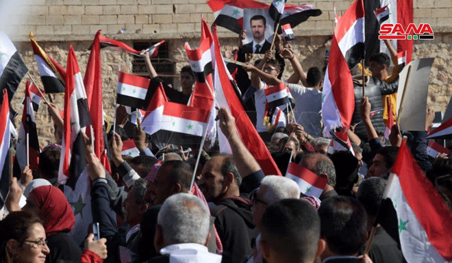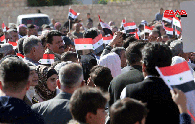 Les habitants de la ville de Fafine et des villages voisins participant au sit-in ont réitéré leur soutien à l’armée arabe syrienne, qui avait remporté les victoires dans ses batailles contre les ennemis de la patrie.