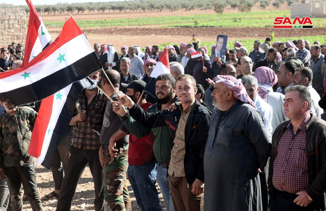 Les participants ont porté le drapeau national et les pancartes qui dénoncent les crimes commis par les forces de l’occupation et les réseaux terroristes contre les habitants, appelant à purifier le sol syrien de l’occupant turc et de ses mercenaires par tous les moyens possibles.