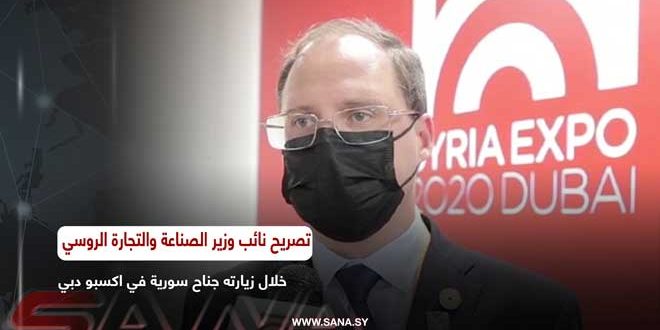 Déclaration du commissaire général du Pavillon de la Russie, vice-ministre de l’Industrie et du Commerce lors de son visite au pavillon syrien